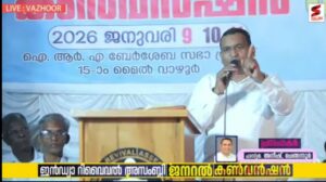 കോട്ടയം : ഇൻഡ്യാ റിവൈവൽ അസംബ്ലി ദൈവസഭയുടെ 31-ാമത് ജനറൽ കൺവൻഷന് അനുഗ്രഹ സമാപ്തി. ജനുവരി 9 മുതൽ 11 വരെ വാഴൂർ 15-ാം മൈൽ ബേർ-ശേബാ ഗ്രൗണ്ടിൽ നടന്ന ജനറൽ കൺവൻഷൻ സഭാ ജനറൽ സെക്രട്ടറി പാസ്റ്റർ പി.സി ജേക്കബ് ഉദ്ഘാടനം ചെയ്തു. വിശ്വാസികളാകുവാൻ ആർക്കും കഴിയും, ശിഷ്യന്മാർ ആകുവാൻ പ്രയാസമാണ്. എന്നാൽ വചനത്തിൻ്റെ സത്യം അറിഞ്ഞ ദൈവ മക്കൾ അതിൽ നിലനിൽക്കുന്ന, ദൈവത്തിൻ്റെ കൽപ്പനകൾ അനുസരിക്കുന്ന യഥാർത്ഥ ശിഷ്യന്മാരാകണമെന്ന് (യോ.8:31,32; മത്തായി 28:19,20) ഉദ്ഘാടന പ്രസംഗത്തിൽ അദ്ദേഹം പറഞ്ഞു. പാസ്റ്റർ വർഗീസ് പി. ജോസഫ് അദ്ധ്യക്ഷത വഹിച്ച യോഗത്തിൽ പാസ്റ്റർ സജോ തോണിക്കുഴിയിൽ എബ്രാ.3:1 ആസ്പദമാക്കി പ്രസംഗിച്ചു.