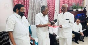 ഐപിസി സഭ ജനറൽ വൈസ് പ്രസിഡന്റ് പാസ്റ്റർ ഫിലിപ്പ് പി. തോമസ് നിവേദനം നൽകുന്നു. മന്ത്രി വി.എൻ. വാസവൻ, പാസ്റ്റർ ജെയിംസ് വി.ഫിലിപ്പ്, മാത്യു കുരുവിള എന്നിവർ സമീപം.